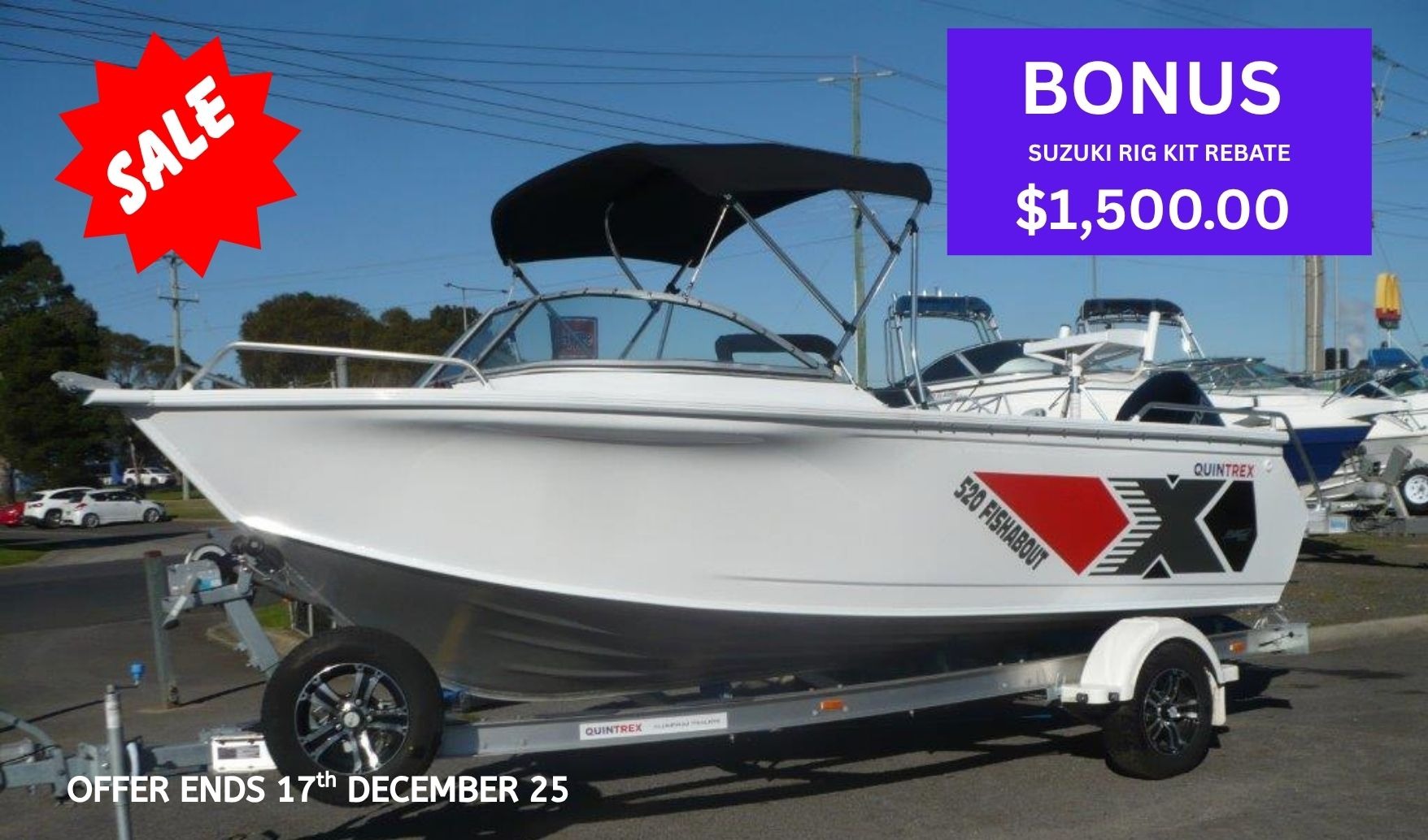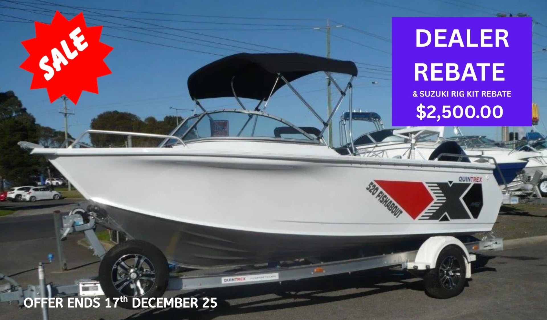 The Quintrex 520 Fishabout is a versatile runabout designed for fishing, cruising, and skiing, offering a balance of performance and space for up to five people. It features Quintrex's Blade Hull for a smooth ride, a 95-liter underfloor fuel tank, and can accommodate a 115hp engine. Key features include ample storage, a walk-through dash, and options for various configurations, including the Pro model with pre-selected upgrades.